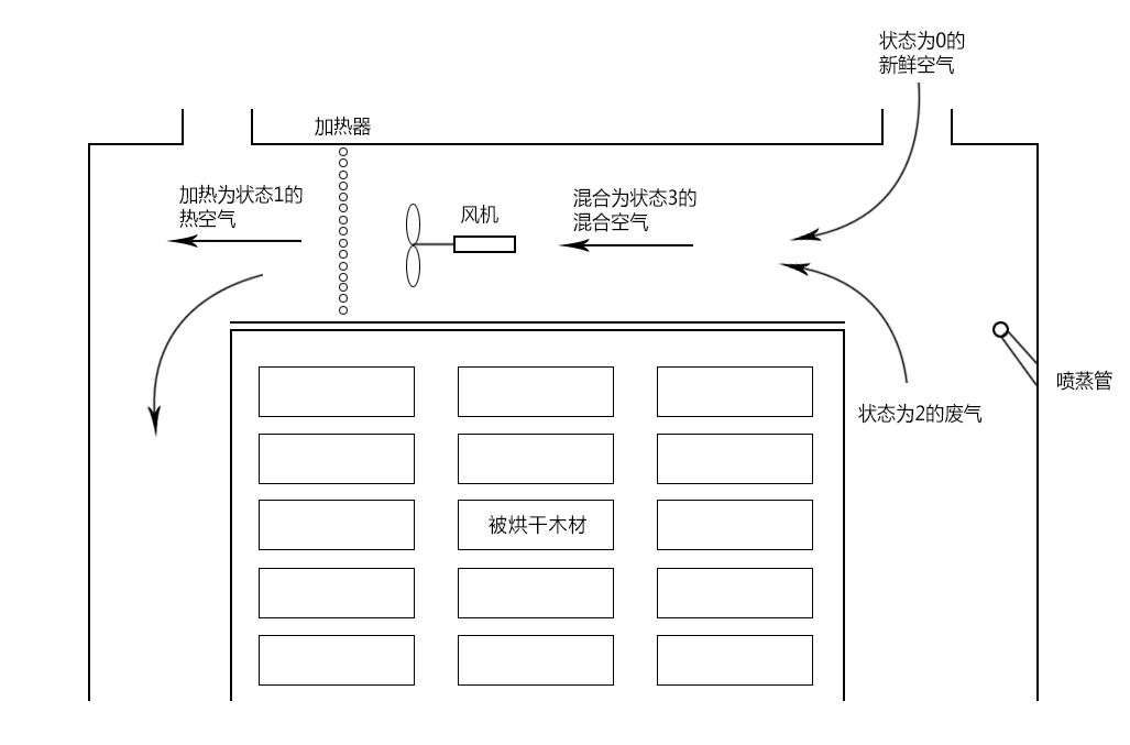 木材干燥介質的循環過程圖                                                                                                                         木材烘干曲線變化圖