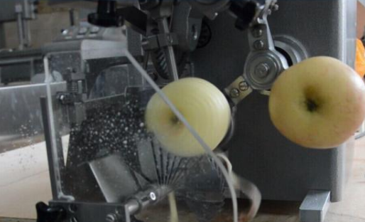 3、去皮:可使用去皮機(jī)(也可人工)均勻地消去蘋果表皮,剔除有裂縫、有斑點(diǎn)的部位;