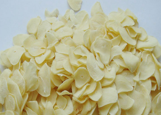 七、分選包裝:將干蒜片按完整度進(jìn)行過(guò)篩分級(jí),去除少許碎蒜片,將合格的蒜片裝入塑料袋內(nèi)包裝,用紙箱外包裝處理后,貯藏于干燥、涼爽、通風(fēng)的倉(cāng)庫(kù)內(nèi)。