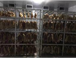 2肉制品熟化工藝是人為的提供合適的溫濕度完成物料的熟化、成分合成、轉換等過程。只有在適合的溫濕環(huán)境才能保證臘鴨的顏色和香味,否則達不到熟化的過程,那么臘鴨的香味就出不來,品質也就降低了。