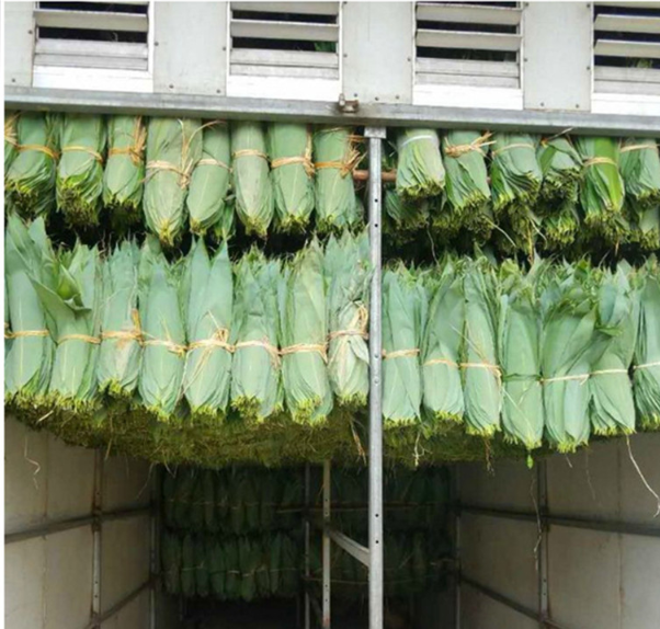 3、粽葉屬于低附加值的產品,烘干成本上系統每小時用電30度,每批次粽葉的烘干用電量720度,按照每度電1元計算,每斤新鮮的粽葉用電成本不超過0.18元。其中,粽葉難干燥的部分是捆扎的梗子部分,如果此部分的捆扎沒有那么厚將會縮短干燥時間。