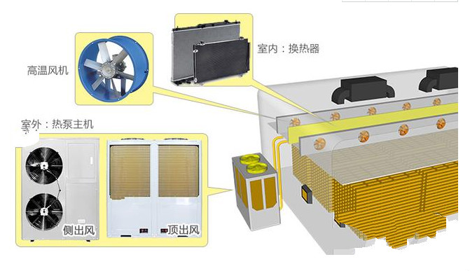 1:熱泵烘干機組:主要由壓縮機、制冷劑、蒸發器、冷凝器(換熱器)、鏈接管路、控制系統。